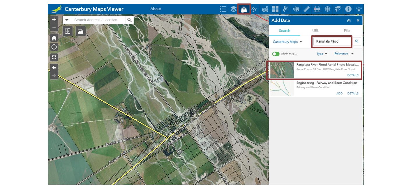 Environment Canterbury's team of scientists and engineers have captured images of the south branch of the Rangitata River during the December 2019 flooding. Several hundred vertical photos were taken on the 9th of December 2019. These were combined together using specialist software and a technique called “mosaicing” to create this single image. It is important to note that due to some technical constraints, the images are not considered to be 100% accurate in regards to location.