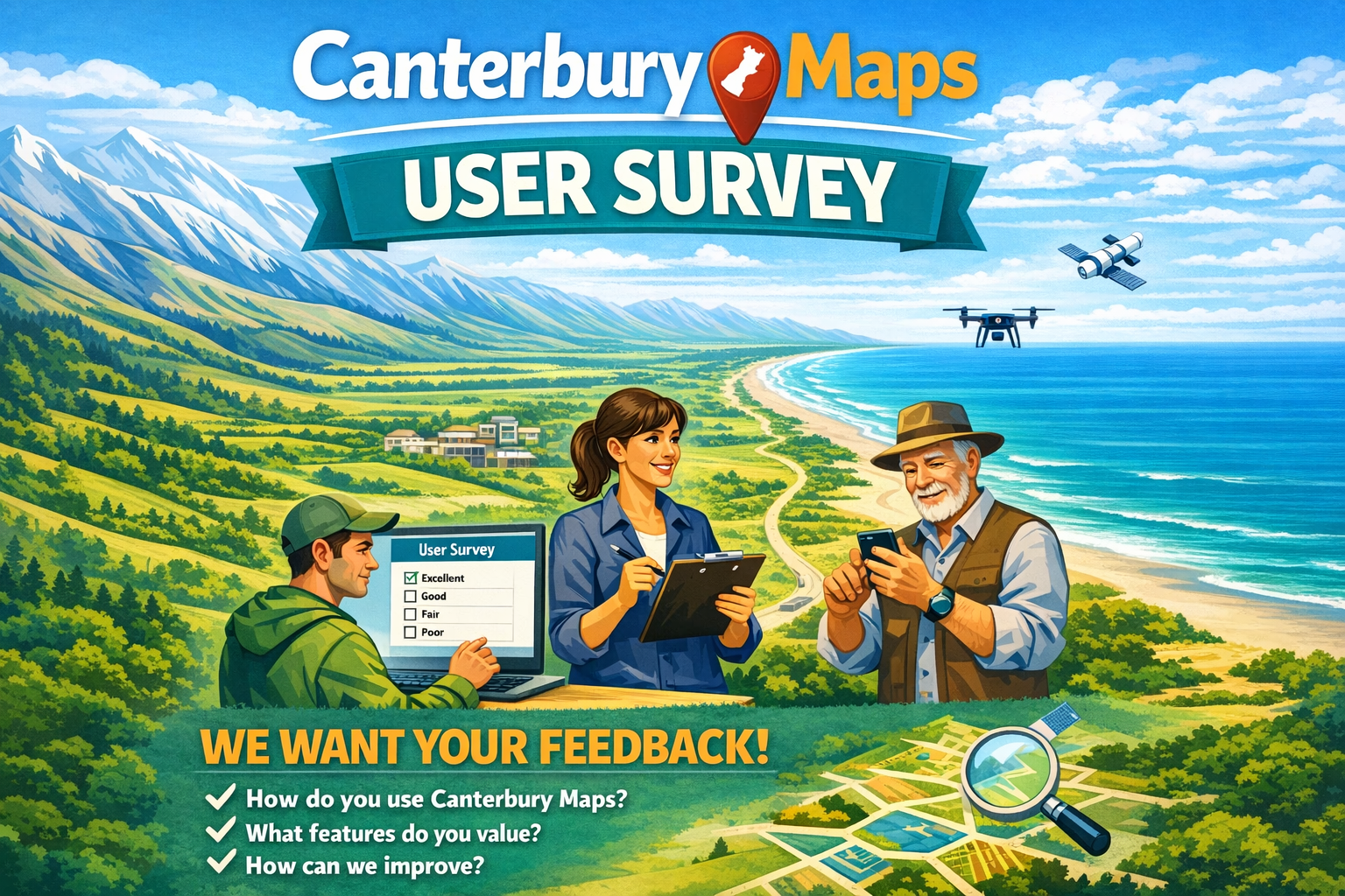 Have your say in the future direction of Canterbury Maps. Submit a user survey here